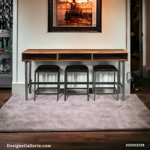 A sofa table with 3 stools is a space-saving furniture piece placed behind a sofa or along a wall. It’s ideal for casual dining, working from home, or serving as an extra seating area for entertaining guests.
